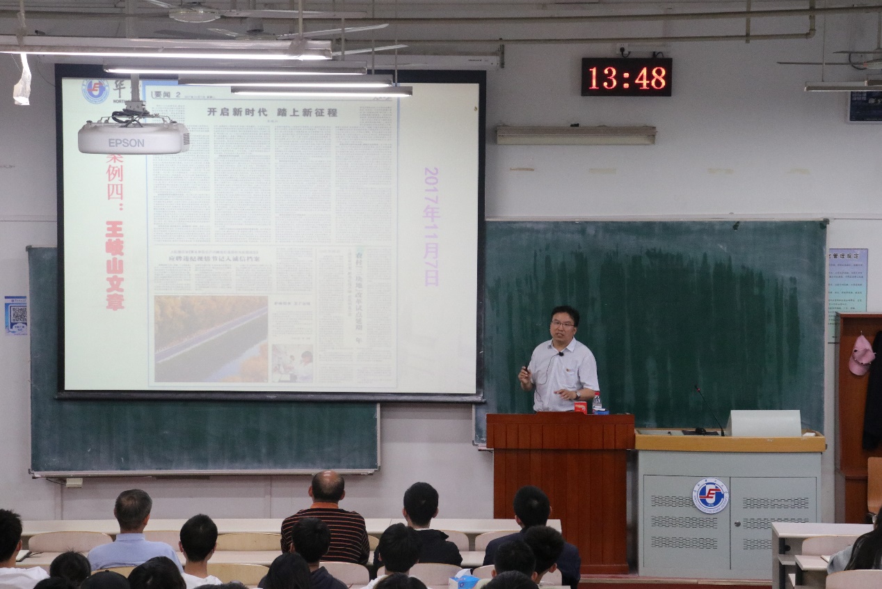 孙平报告主题为“从历次党代会认识和把握党的发展逻辑”。他首先回顾了中国共产党在百年光辉历程中完成的三件大事、实现的三大飞跃和党的重大理论成果。接着,以党的历史发展脉络为主线,通过列举真实鲜活的案例和生动详实的资料,深入解读了中共一大到中共十九大历次党代会召开的时代背景、时间地点、主要内容和历史意义。同时结合八个基本判断,深刻阐释了从一大到十九大,中国共产党不忘初心,砥砺前行,筚路蓝缕,艰苦创业,带领中华民族和中国人民一步步走向富强的光辉历程。孙平的报告内容丰富,深入浅出,我院师生纷纷表示收获颇丰,通过本次辅导报告会对于党的历次党代会有了更加深刻和系统的了解。