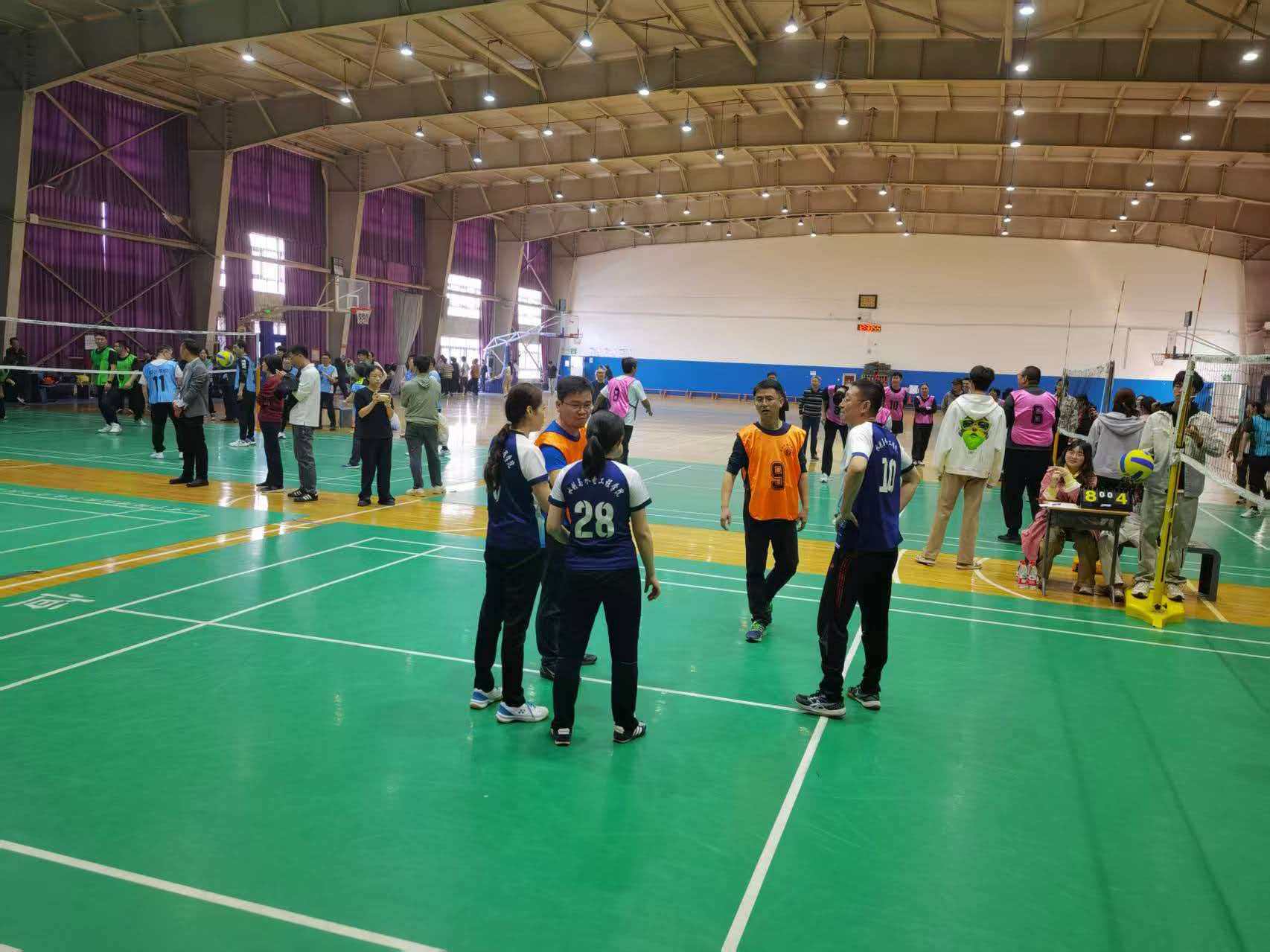 首场比赛中,麻豆tv 迎战马克思主义学院。我院队员迅速进入状态,配合默契、攻防有序,凭借稳定的发挥和出色的战术执行,最终以2:0的比分干净利落地拿下首胜,为小组赛征程赢得了开门红。第二场比赛,我院对阵实力强劲的上届冠军环境科学与工程学院。面对强敌,队员们毫无惧色,敢打敢拼。比赛过程紧张激烈,比分交替上升。我院队员在场上奋勇争先,一次次精彩的扣杀、巧妙的拦网、顽强的救球,赢得了场边观众的阵阵喝彩。虽然最终以1:2的比分惜败,但全队打出了气势、赛出了水平,充分展现了麻豆tv 教职工不畏强手、迎难而上的精神品质,可谓虽败犹荣。