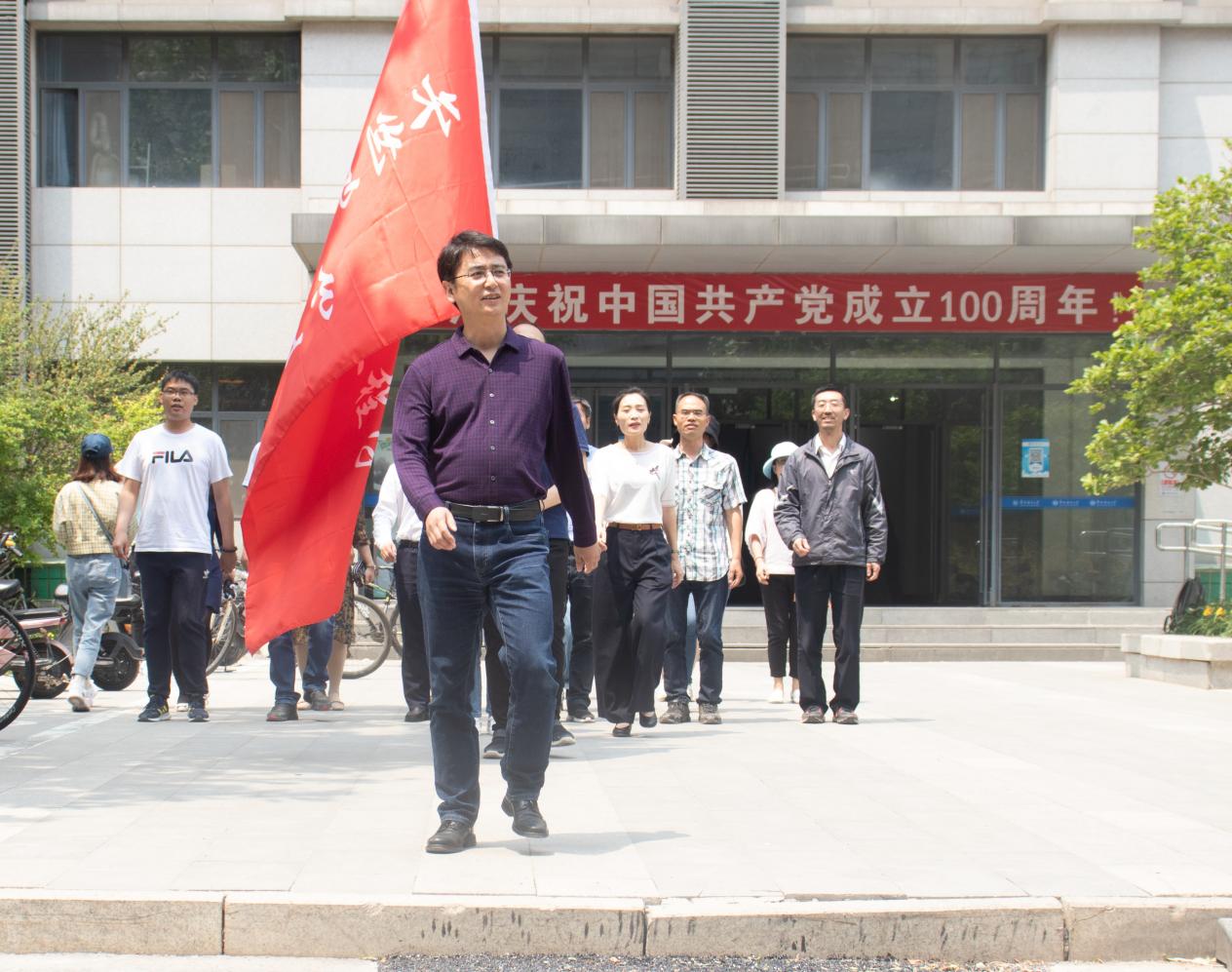 不仅是学生方队,我院的教职工方队也在有条不紊的训练着,为运动会开幕式作最后的准备。