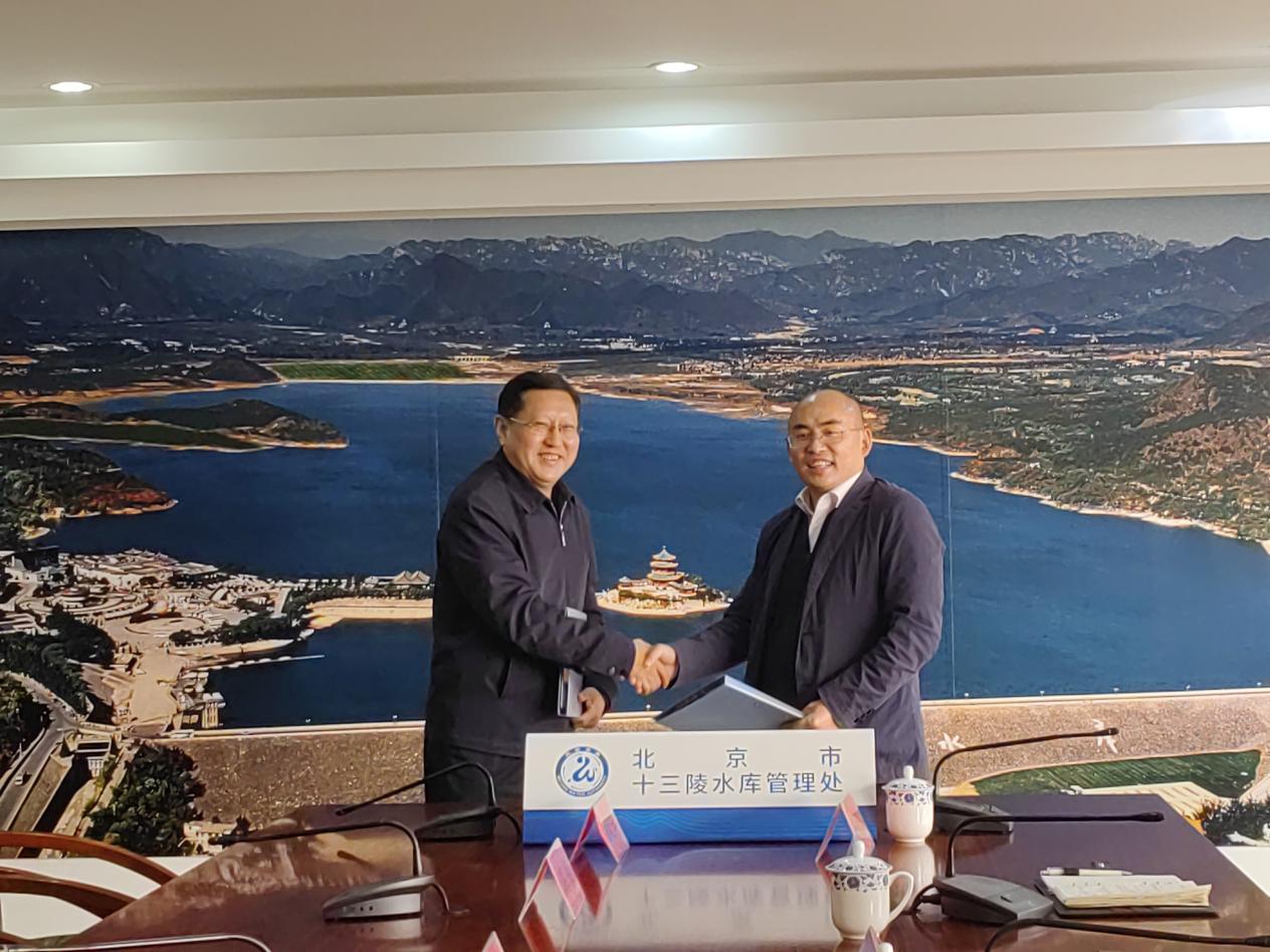麻豆tv 党委书记刘明军与北京市十三陵水库管理处党委书记、主任陈海东签署了十三陵水库纪念碑公园爱国主义教育基地共建协议。