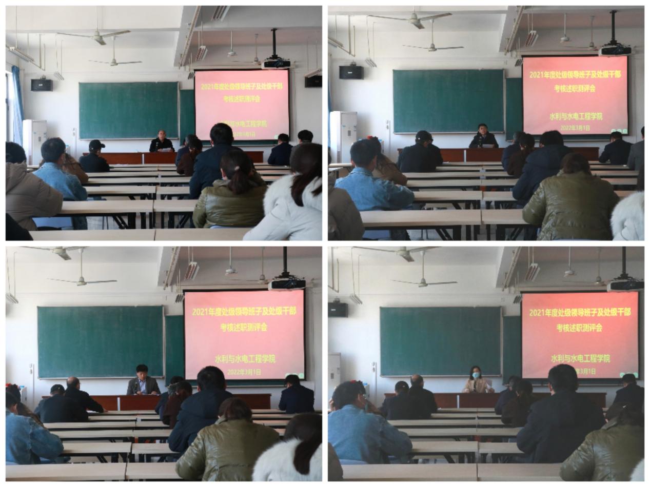 学院副院长(主持工作)张尚弘就学科建设、学院发展规划、学科评估、人才引进等工作开展个人述职。学院党委副书记杜广微就学生思想政治教育及管理、工会、宣传、安全保卫等工作开展个人述职。学院副院长王弋就本科教学、学位与研究生培养、实验室安全等工作开展个人述职。
